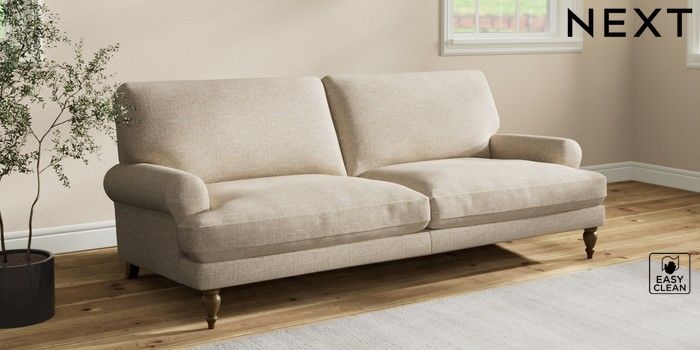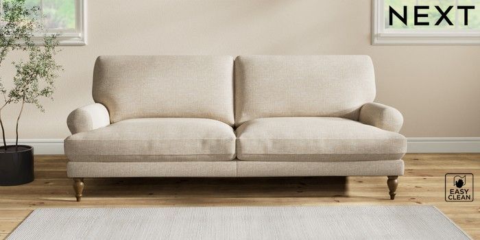 7.2.10 Erin Deep Relaxed Sit 3 Seater Sofa Boucle Weave Easy Clean Dark Natural High Classic Turned - Mid | Made Click here to use our website with more accessibility support, for example screen readers