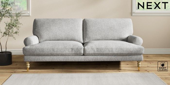 7.2.10 Erin Deep Relaxed Sit 3 Seater Sofa Chunky Boucle Easy Clean Light Grey High Classic Turned Brass Castor - Light | Made Click here to use our website with more accessibility support, for example screen readers