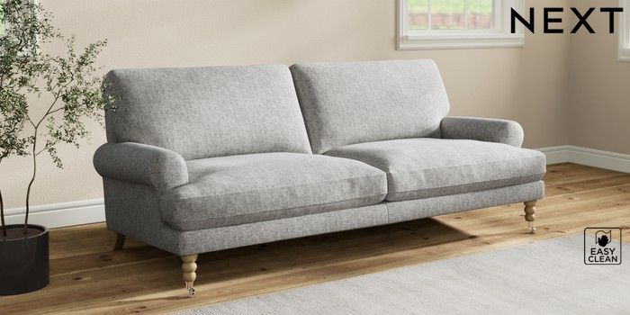 7.2.10 Erin Deep Relaxed Sit 3 Seater Sofa Chunky Boucle Easy Clean Light Grey High Classic Turned Chrome Castor - Light | Made Click here to use our website with more accessibility support, for example screen readers