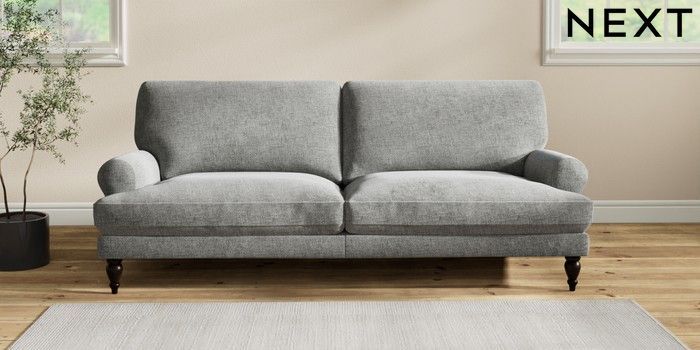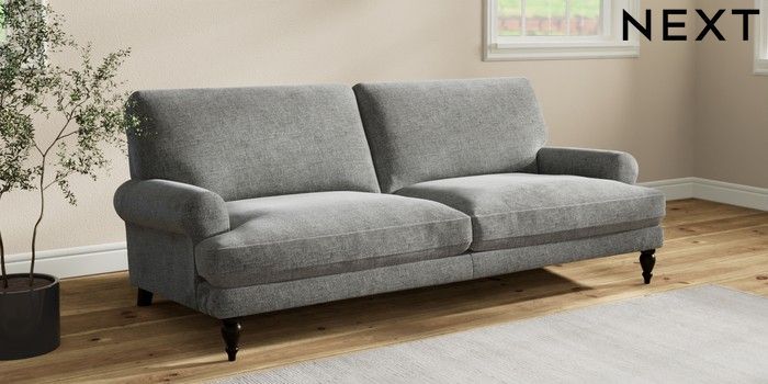 7.2.10 Erin Deep Relaxed Sit 3 Seater Sofa Chunky Chenille Dark Grey High Classic Turned - Dark | Made Click here to use our website with more accessibility support, for example screen readers