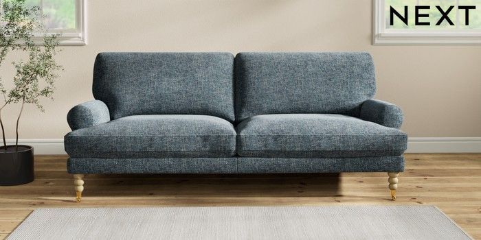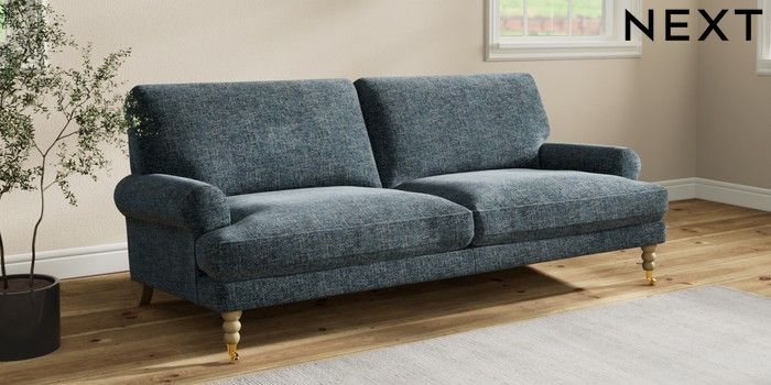7.2.10 Erin Deep Relaxed Sit 3 Seater Sofa Chunky Chenille Dark Navy Blue High Classic Turned Brass Castor - Light | Made Click here to use our website with more accessibility support, for example screen readers