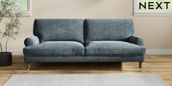 7.2.10 Erin Deep Relaxed Sit 3 Seater Sofa Chunky Chenille Dark Navy Blue High Classic Turned Chrome Castor - Mid | Made Click here to use our website with more accessibility support, for example screen readers