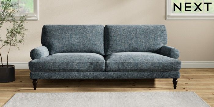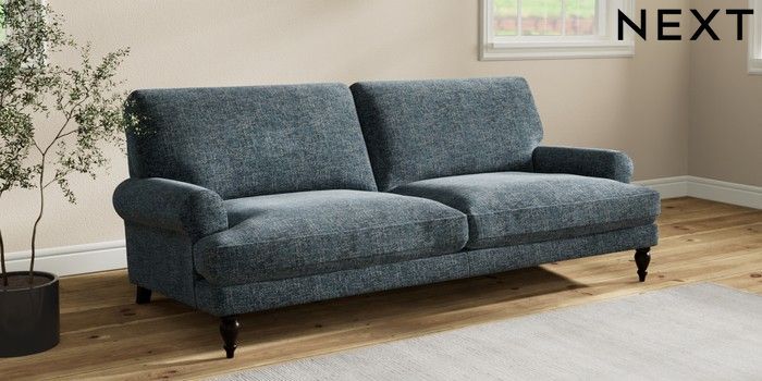 7.2.10 Erin Deep Relaxed Sit 3 Seater Sofa Chunky Chenille Dark Navy Blue High Classic Turned - Dark | Made Click here to use our website with more accessibility support, for example screen readers