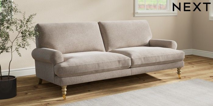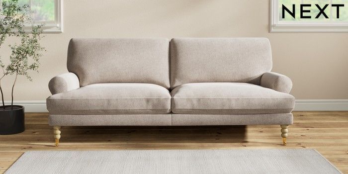 7.2.10 Erin Deep Relaxed Sit 3 Seater Sofa Chunky Chenille Light Dove High Classic Turned Brass Castor - Light | Made Click here to use our website with more accessibility support, for example screen readers