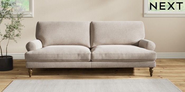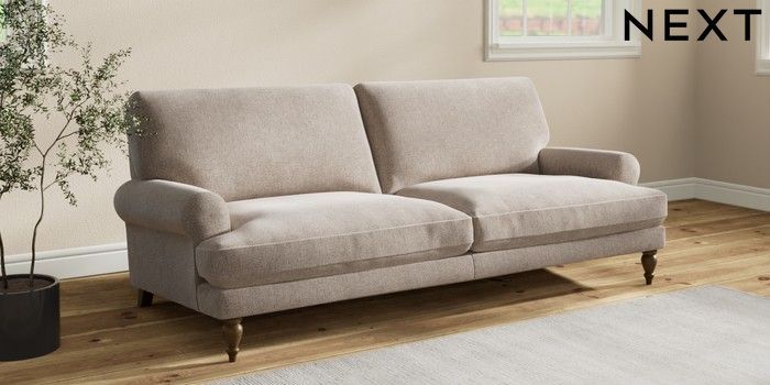 7.2.10 Erin Deep Relaxed Sit 3 Seater Sofa Chunky Chenille Light Dove High Classic Turned - Mid | Made Click here to use our website with more accessibility support, for example screen readers