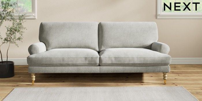 7.2.10 Erin Deep Relaxed Sit 3 Seater Sofa Chunky Chenille Light Grey High Classic Turned Brass Castor - Light | Made Click here to use our website with more accessibility support, for example screen readers