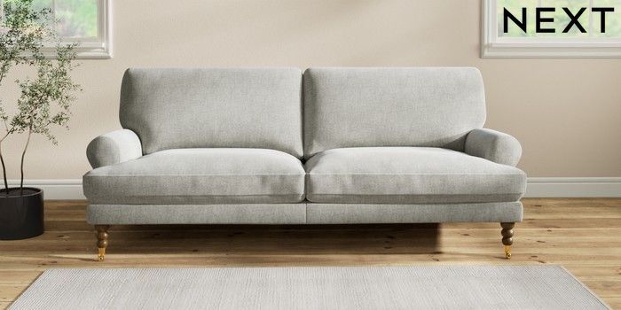 7.2.10 Erin Deep Relaxed Sit 3 Seater Sofa Chunky Chenille Light Grey High Classic Turned Brass Castor - Mid | Made Click here to use our website with more accessibility support, for example screen readers