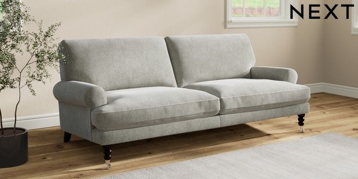 7.2.10 Erin Deep Relaxed Sit 3 Seater Sofa Chunky Chenille Light Grey High Classic Turned Chrome Castor - Dark | Made Click here to use our website with more accessibility support, for example screen readers