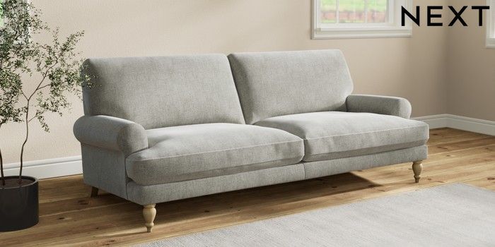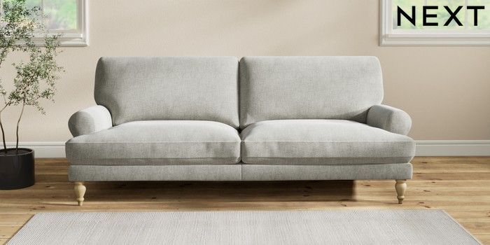 7.2.10 Erin Deep Relaxed Sit 3 Seater Sofa Chunky Chenille Light Grey High Classic Turned - Light | Made Click here to use our website with more accessibility support, for example screen readers