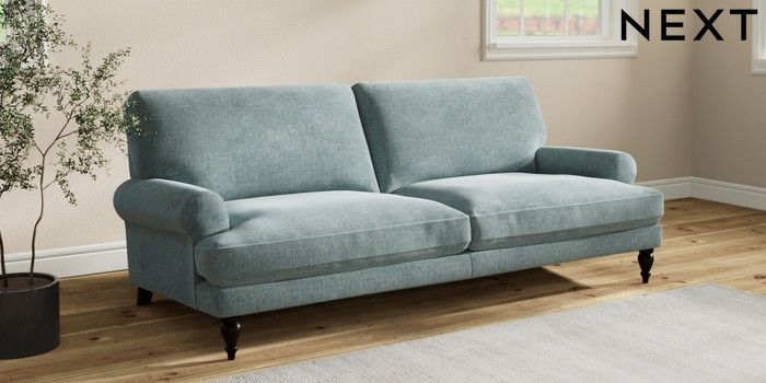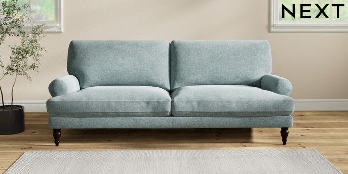 7.2.10 Erin Deep Relaxed Sit 3 Seater Sofa Chunky Chenille Light Teal Green High Classic Turned - Dark | Made Click here to use our website with more accessibility support, for example screen readers