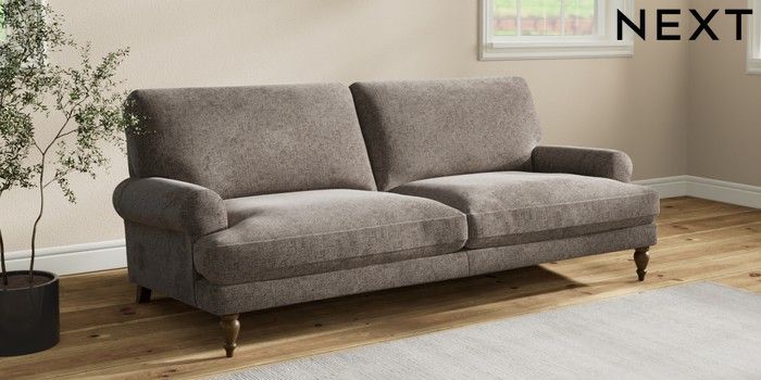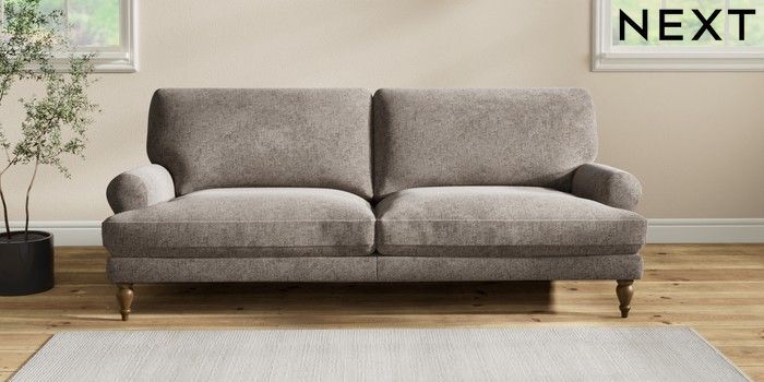 7.2.10 Erin Deep Relaxed Sit 3 Seater Sofa Chunky Chenille Mink Brown High Classic Turned - Mid | Made Click here to use our website with more accessibility support, for example screen readers