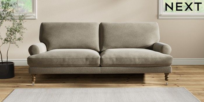 7.2.10 Erin Deep Relaxed Sit 3 Seater Sofa Chunky Marl Light Olive Green High Classic Turned Chrome Castor - Mid | Made Click here to use our website with more accessibility support, for example screen readers