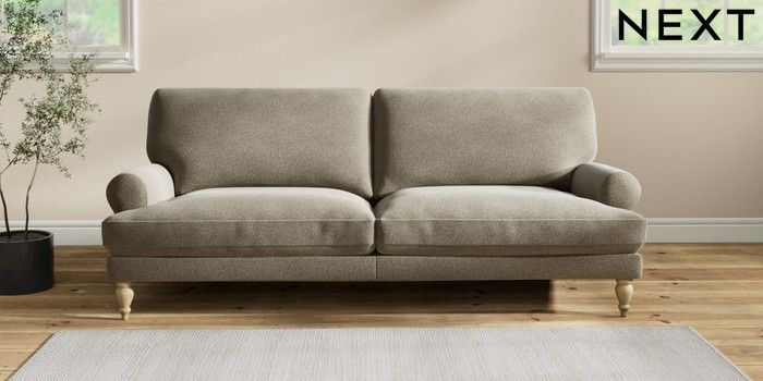 7.2.10 Erin Deep Relaxed Sit 3 Seater Sofa Chunky Marl Light Olive Green High Classic Turned - Light | Made Click here to use our website with more accessibility support, for example screen readers