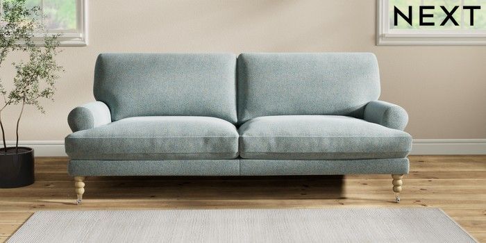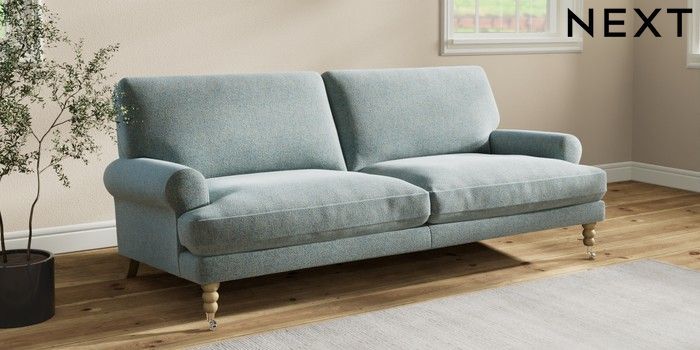 7.2.10 Erin Deep Relaxed Sit 3 Seater Sofa Chunky Marl Mid Blue High Classic Turned Chrome Castor - Light | Made Click here to use our website with more accessibility support, for example screen readers