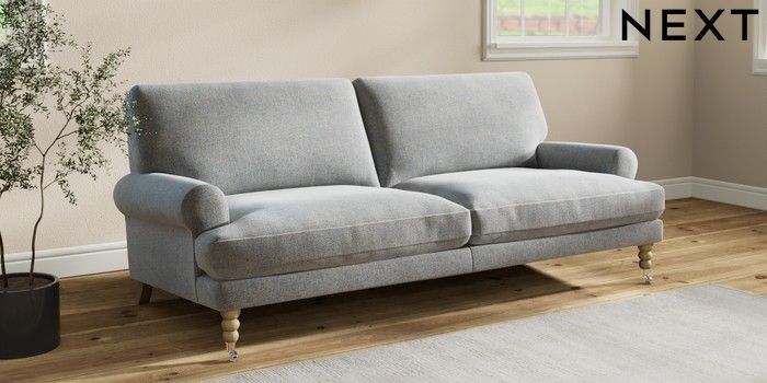 7.2.10 Erin Deep Relaxed Sit 3 Seater Sofa Chunky Marl Mid Grey High Classic Turned Chrome Castor - Light | Made Click here to use our website with more accessibility support, for example screen readers