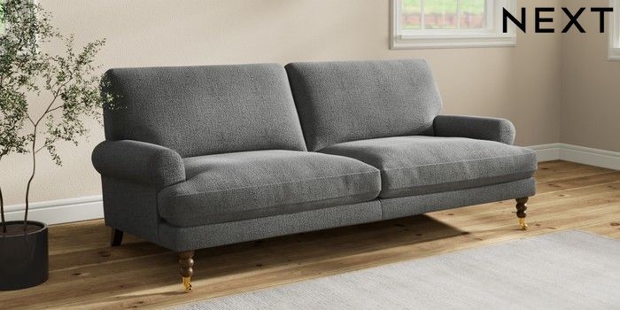 7.2.10 Erin Deep Relaxed Sit 3 Seater Sofa Chunky Texture Dark Grey High Classic Turned Brass Castor - Mid | Made Click here to use our website with more accessibility support, for example screen readers