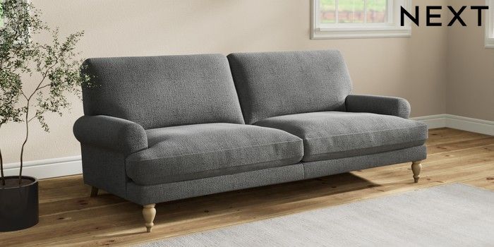 7.2.10 Erin Deep Relaxed Sit 3 Seater Sofa Chunky Texture Dark Grey High Classic Turned - Light | Made Click here to use our website with more accessibility support, for example screen readers