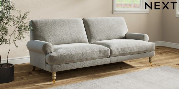7.2.10 Erin Deep Relaxed Sit 3 Seater Sofa Chunky Texture Dove High Classic Turned Brass Castor - Light | Made Click here to use our website with more accessibility support, for example screen readers