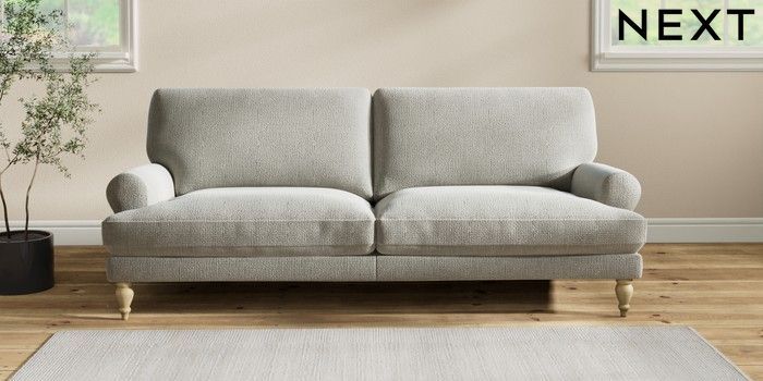 7.2.10 Erin Deep Relaxed Sit 3 Seater Sofa Chunky Texture Dove High Classic Turned - Light | Made Click here to use our website with more accessibility support, for example screen readers
