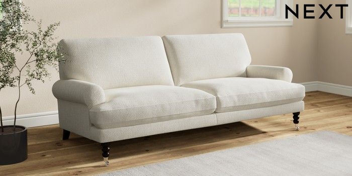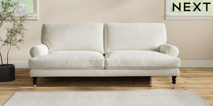7.2.10 Erin Deep Relaxed Sit 3 Seater Sofa Chunky Texture Oyster High Classic Turned Chrome Castor - Dark | Made Click here to use our website with more accessibility support, for example screen readers