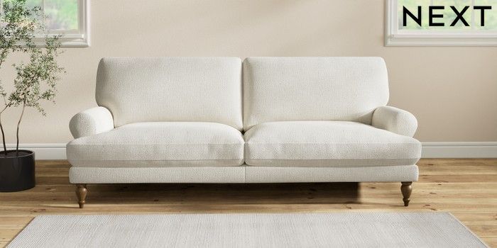 7.2.10 Erin Deep Relaxed Sit 3 Seater Sofa Chunky Texture Oyster High Classic Turned - Mid | Made Click here to use our website with more accessibility support, for example screen readers