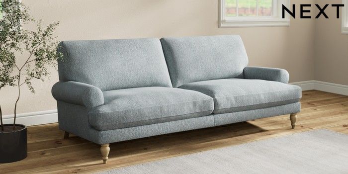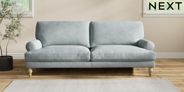 7.2.10 Erin Deep Relaxed Sit 3 Seater Sofa Chunky Weave Mid Blue High Classic Turned - Light | Made Click here to use our website with more accessibility support, for example screen readers