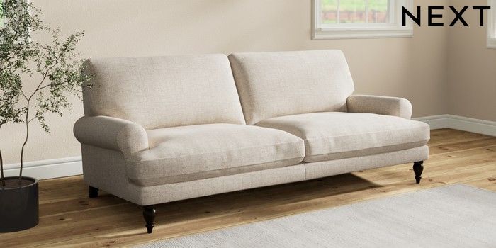 7.2.10 Erin Deep Relaxed Sit 3 Seater Sofa Chunky Weave Mid Natural High Classic Turned - Dark | Made Click here to use our website with more accessibility support, for example screen readers