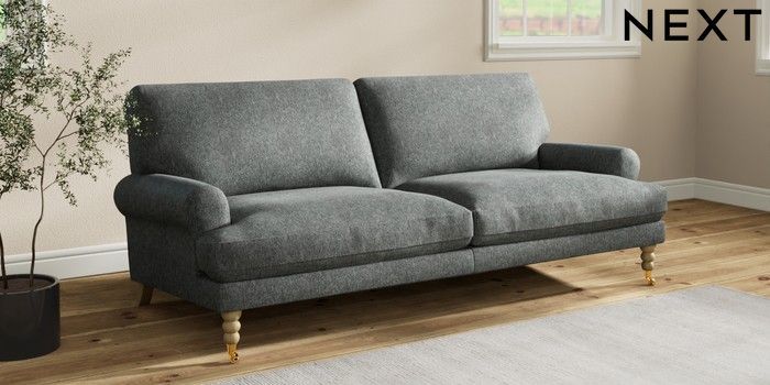 7.2.10 Erin Deep Relaxed Sit 3 Seater Sofa Cotswold Chenille Dark Grey High Classic Turned Brass Castor - Light | Made Click here to use our website with more accessibility support, for example screen readers