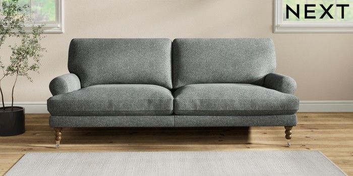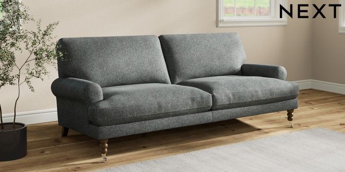 7.2.10 Erin Deep Relaxed Sit 3 Seater Sofa Cotswold Chenille Dark Grey High Classic Turned Chrome Castor - Mid | Made Click here to use our website with more accessibility support, for example screen readers