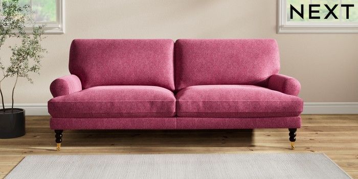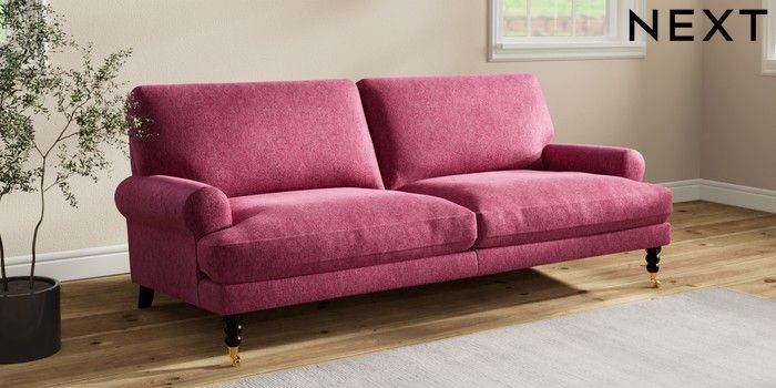 7.2.10 Erin Deep Relaxed Sit 3 Seater Sofa Cotswold Chenille Dark Raspberry Pink High Classic Turned Brass Castor - Dark | Made Click here to use our website with more accessibility support, for example screen readers