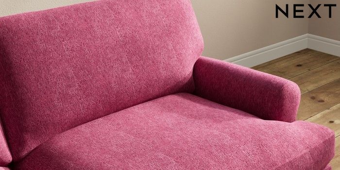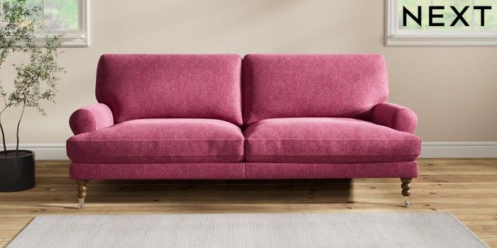 7.2.10 Erin Deep Relaxed Sit 3 Seater Sofa Cotswold Chenille Dark Raspberry Pink High Classic Turned Chrome Castor - Mid | Made Click here to use our website with more accessibility support, for example screen readers