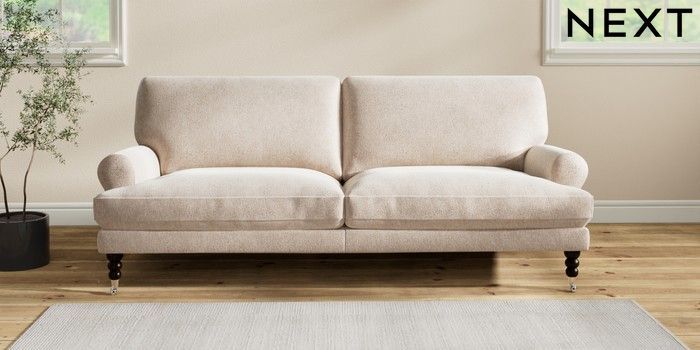 7.2.10 Erin Deep Relaxed Sit 3 Seater Sofa Cotswold Chenille Light Natural High Classic Turned Chrome Castor - Dark | Made Click here to use our website with more accessibility support, for example screen readers