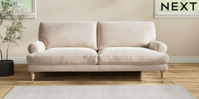 7.2.10 Erin Deep Relaxed Sit 3 Seater Sofa Cotswold Chenille Light Natural High Classic Turned Chrome Castor - Light | Made Click here to use our website with more accessibility support, for example screen readers