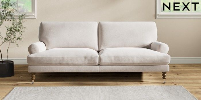 7.2.10 Erin Deep Relaxed Sit 3 Seater Sofa Cotswold Chenille Oyster High Classic Turned Chrome Castor - Mid | Made Click here to use our website with more accessibility support, for example screen readers