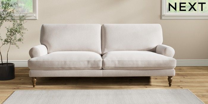 7.2.10 Erin Deep Relaxed Sit 3 Seater Sofa Cotswold Chenille Oyster High Classic Turned - Mid | Made Click here to use our website with more accessibility support, for example screen readers