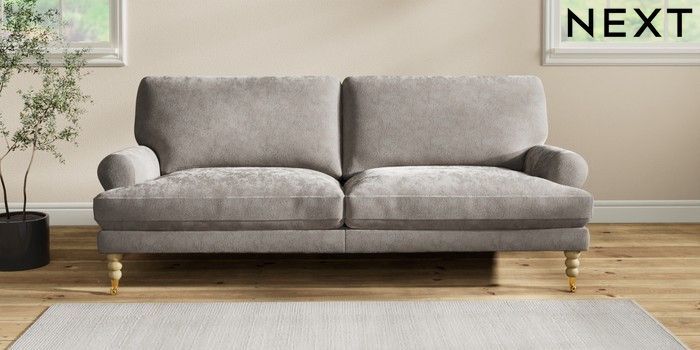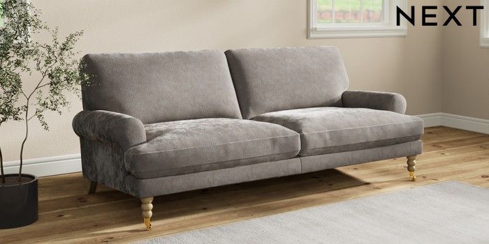 7.2.10 Erin Deep Relaxed Sit 3 Seater Sofa Distressed Velour French Grey High Classic Turned Brass Castor - Light | Made Click here to use our website with more accessibility support, for example screen readers
