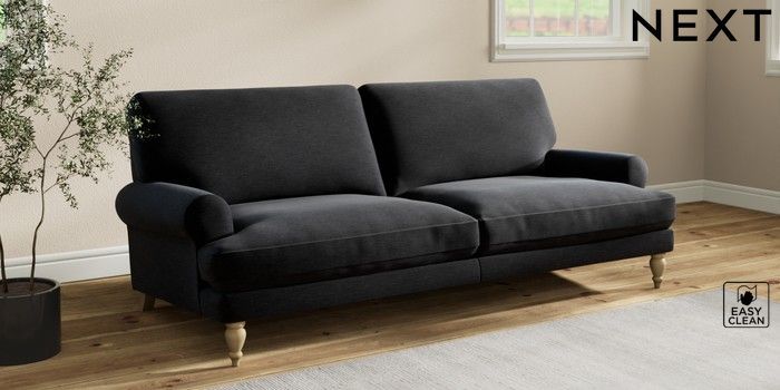 7.2.10 Erin Deep Relaxed Sit 3 Seater Sofa Fine Chenille Easy Clean Black High Classic Turned - Light | Made Click here to use our website with more accessibility support, for example screen readers