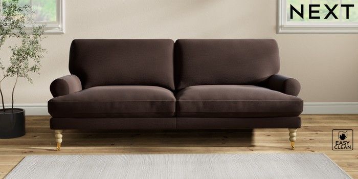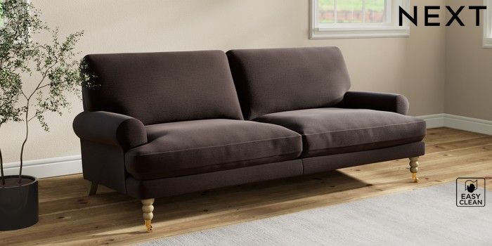 7.2.10 Erin Deep Relaxed Sit 3 Seater Sofa Fine Chenille Easy Clean Chocolate Brown High Classic Turned Brass Castor - Light | Made Click here to use our website with more accessibility support, for example screen readers