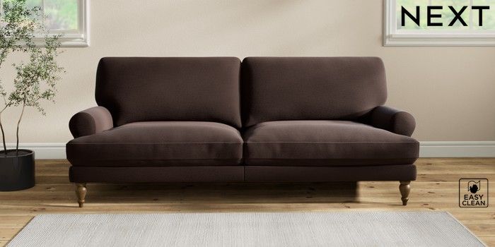 7.2.10 Erin Deep Relaxed Sit 3 Seater Sofa Fine Chenille Easy Clean Chocolate Brown High Classic Turned - Mid | Made Click here to use our website with more accessibility support, for example screen readers