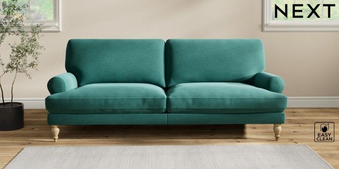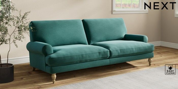 7.2.10 Erin Deep Relaxed Sit 3 Seater Sofa Fine Chenille Easy Clean Dark Juniper Green High Classic Turned - Light | Made Click here to use our website with more accessibility support, for example screen readers