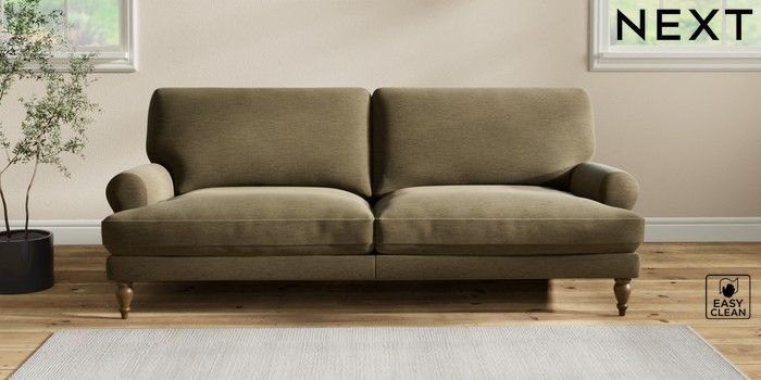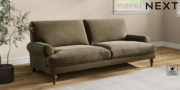 7.2.10 Erin Deep Relaxed Sit 3 Seater Sofa Fine Chenille Easy Clean Dark Moss Green High Classic Turned - Mid | Made Click here to use our website with more accessibility support, for example screen readers