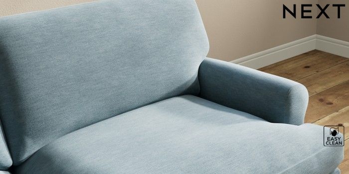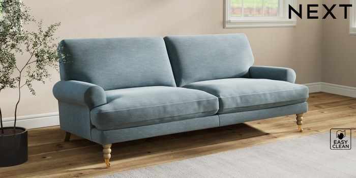 7.2.10 Erin Deep Relaxed Sit 3 Seater Sofa Fine Chenille Easy Clean Mid Blue High Classic Turned Brass Castor - Light | Made Click here to use our website with more accessibility support, for example screen readers