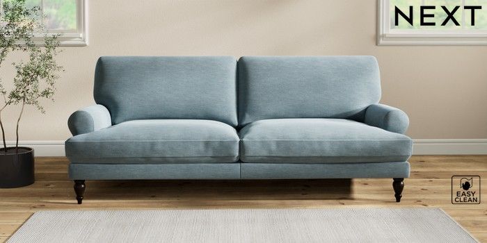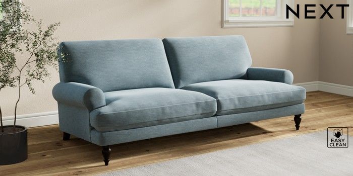 7.2.10 Erin Deep Relaxed Sit 3 Seater Sofa Fine Chenille Easy Clean Mid Blue High Classic Turned - Dark | Made Click here to use our website with more accessibility support, for example screen readers
