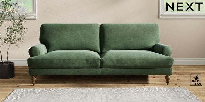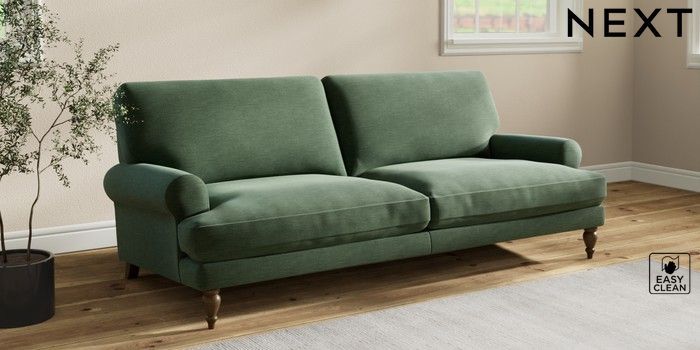 7.2.10 Erin Deep Relaxed Sit 3 Seater Sofa Fine Chenille Easy Clean Mid Khaki Green High Classic Turned - Mid | Made Click here to use our website with more accessibility support, for example screen readers