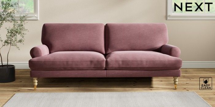 7.2.10 Erin Deep Relaxed Sit 3 Seater Sofa Fine Chenille Easy Clean Mid Mulberry Purple High Classic Turned Brass Castor - Light | Made Click here to use our website with more accessibility support, for example screen readers