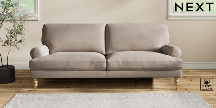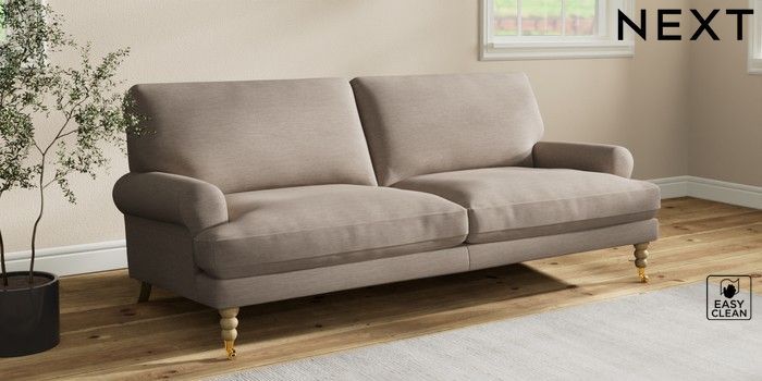 7.2.10 Erin Deep Relaxed Sit 3 Seater Sofa Fine Chenille Easy Clean Mid Taupe Brown High Classic Turned Brass Castor - Light | Made Click here to use our website with more accessibility support, for example screen readers