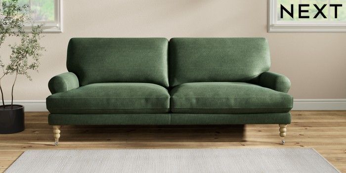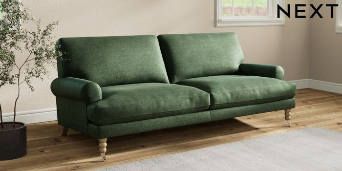 7.2.10 Erin Deep Relaxed Sit 3 Seater Sofa Luxe Chenille Dark Green High Classic Turned Chrome Castor - Light | Made Click here to use our website with more accessibility support, for example screen readers