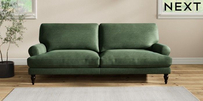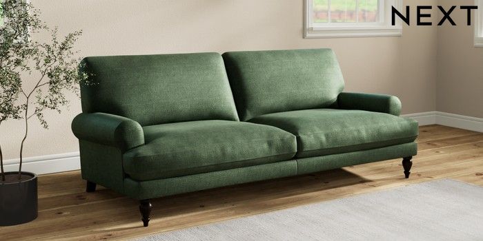7.2.10 Erin Deep Relaxed Sit 3 Seater Sofa Luxe Chenille Dark Green High Classic Turned - Dark | Made Click here to use our website with more accessibility support, for example screen readers