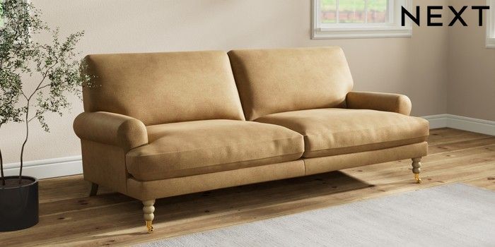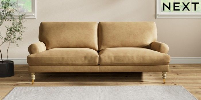 7.2.10 Erin Deep Relaxed Sit 3 Seater Sofa Luxe Chenille Honey Yellow High Classic Turned Brass Castor - Light | Made Click here to use our website with more accessibility support, for example screen readers