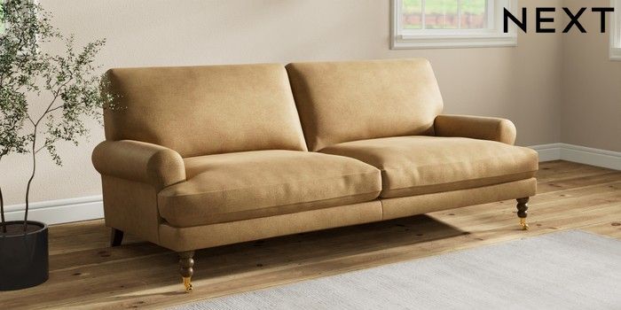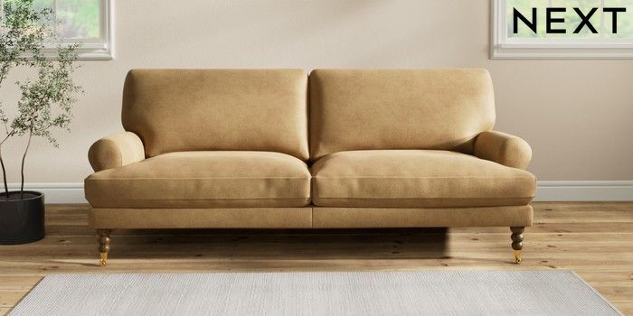 7.2.10 Erin Deep Relaxed Sit 3 Seater Sofa Luxe Chenille Honey Yellow High Classic Turned Brass Castor - Mid | Made Click here to use our website with more accessibility support, for example screen readers